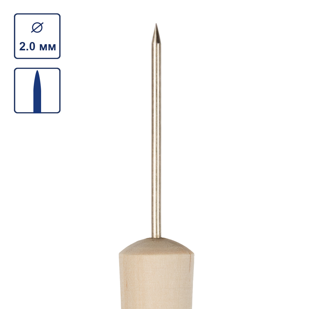 Шило канцелярское проколочное с березовой ручкой 1 шт в чехле d 2,0 Gamma