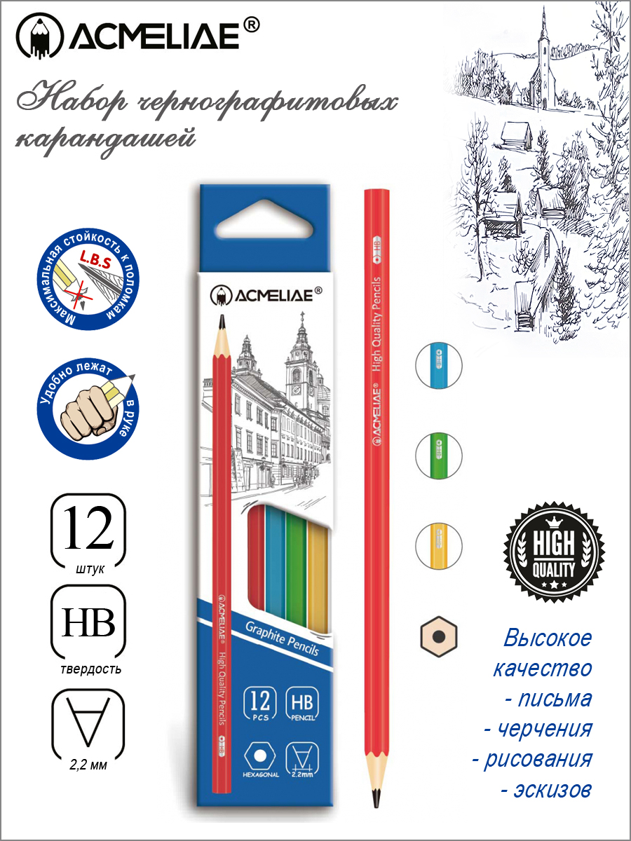 Карандаш ч/гр ACMELIAE HB шестигранный, 4 цвета корпуса,