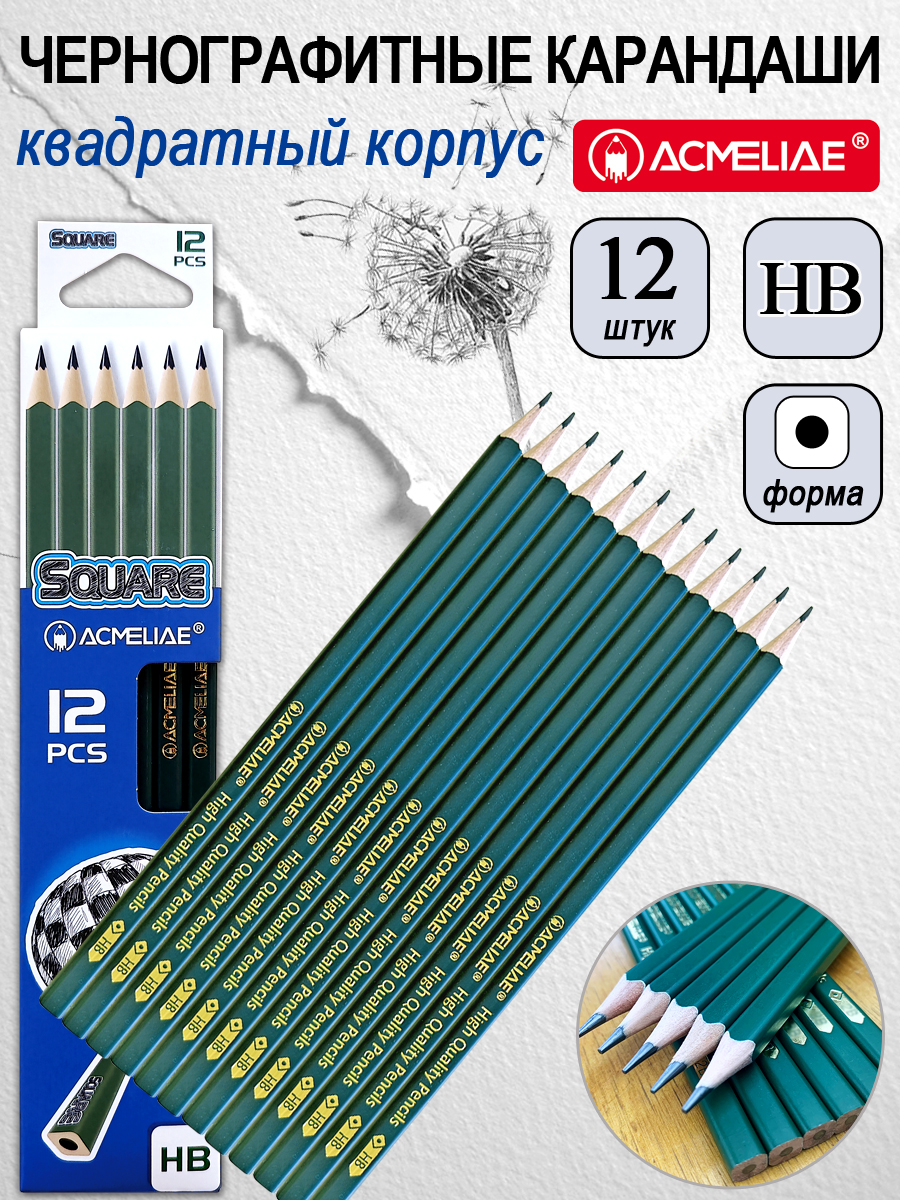Карандаш чернографитный НВ ACMELIAE квадратный