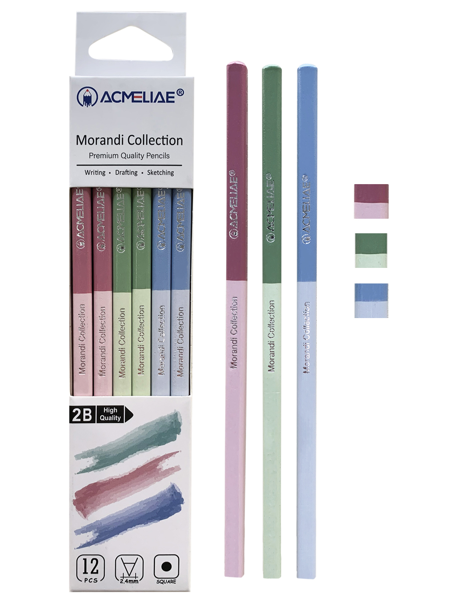 Карандаш чернографитный 2B ACMELIAE Morandi квадратный, 3 цвета корпуса
