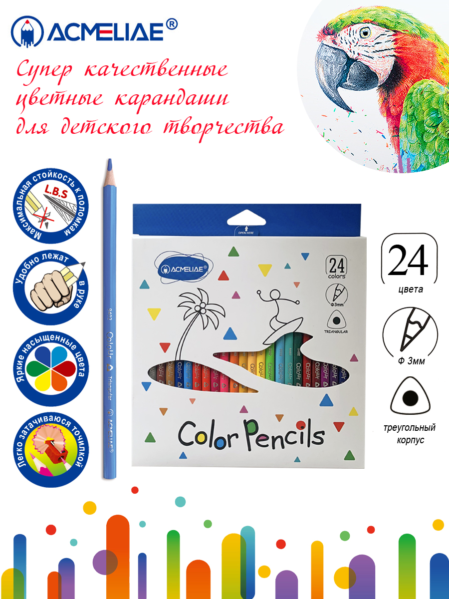 Карандаши цветные ACMELIAE 24цв. трехгранных в картонном футляре