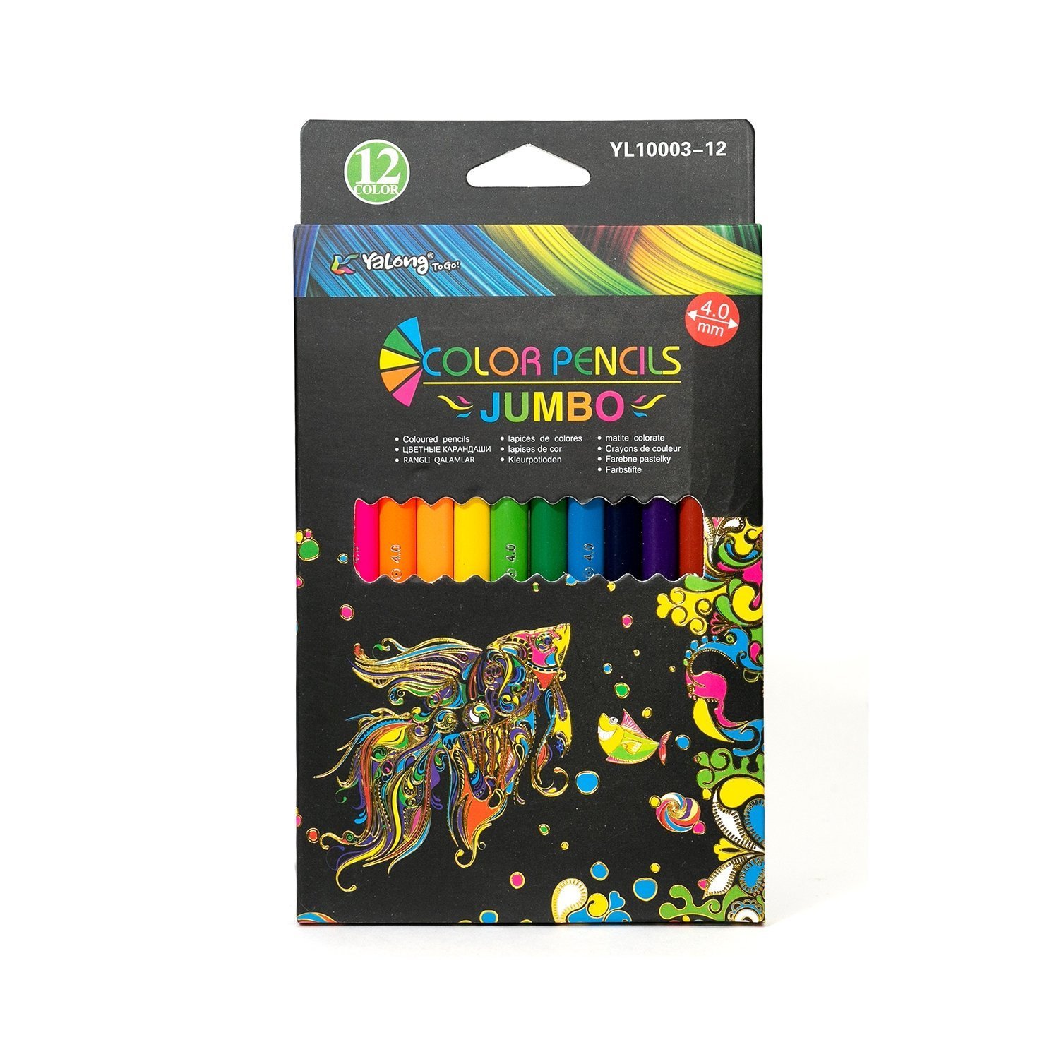 Карандаши цветные YALONG "Секреты океана. Jumbo" 12цв утолщенные. дерев., трехгран, грифель 4мм к/к