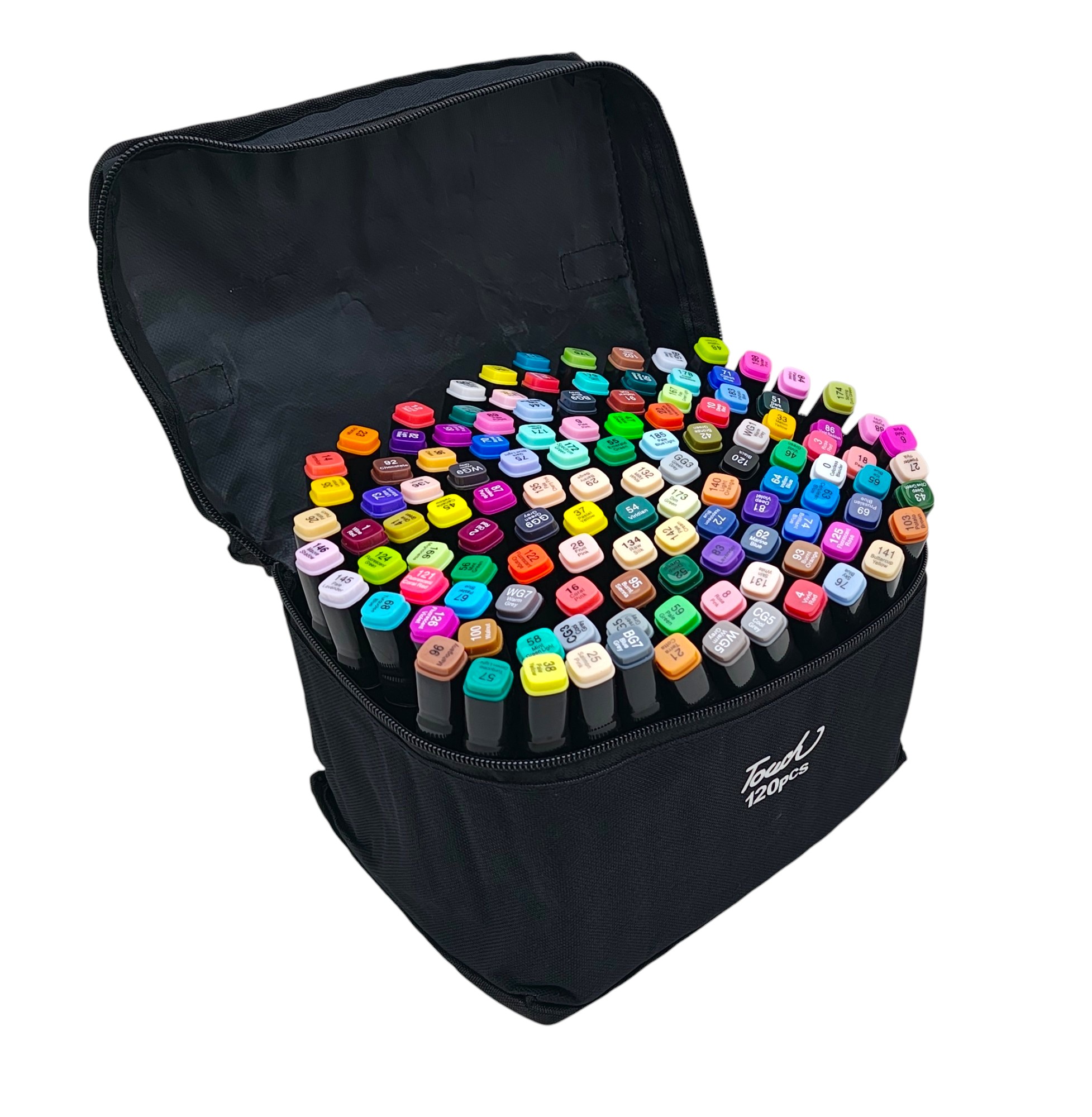 Набор маркеров художественных двухсторонних 120цв в сумочке, пласт.разделители