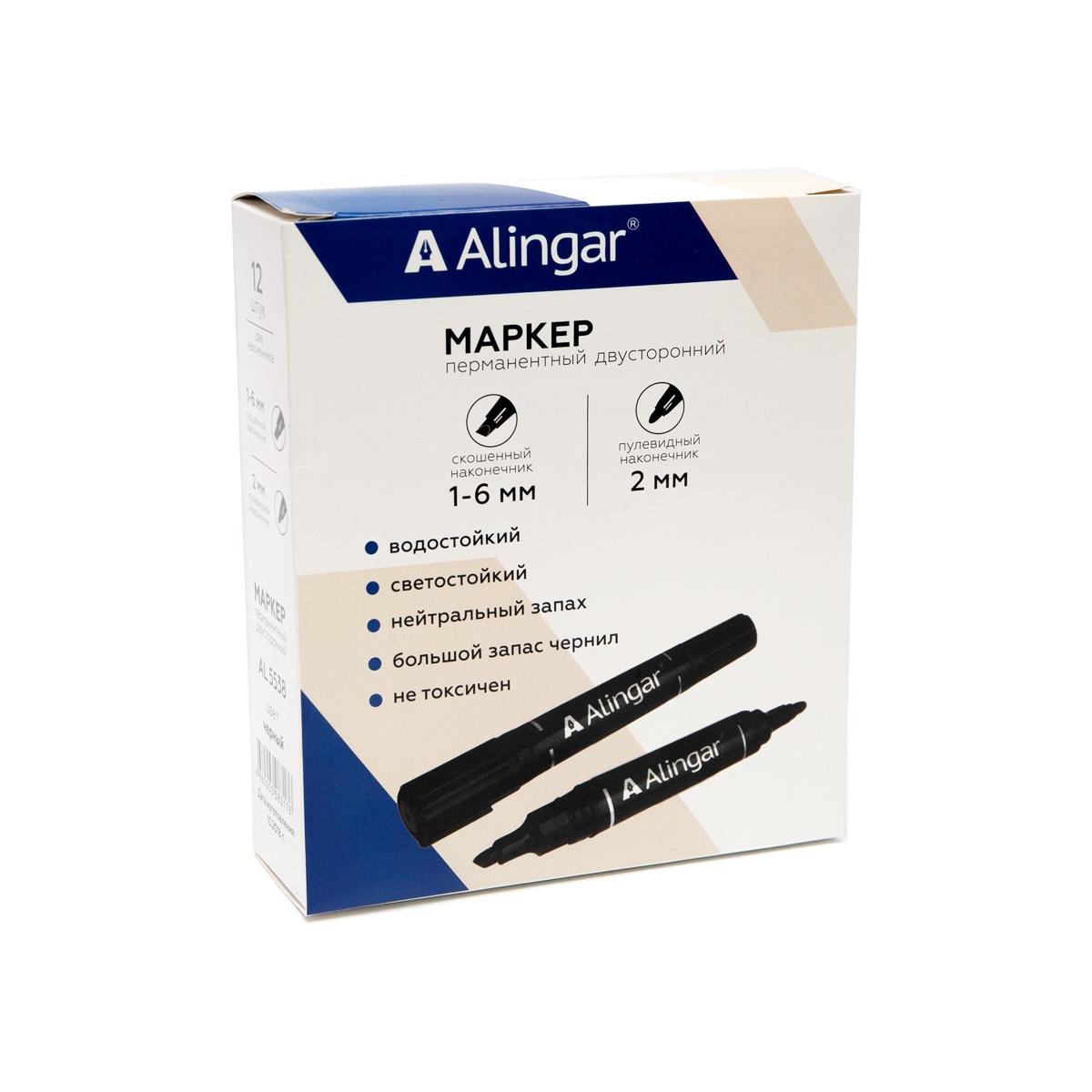 Маркер перманентный двухсторонний ALINGAR пулевидный/скошенный, 2 мм/1-6 мм (аналог 422), черный