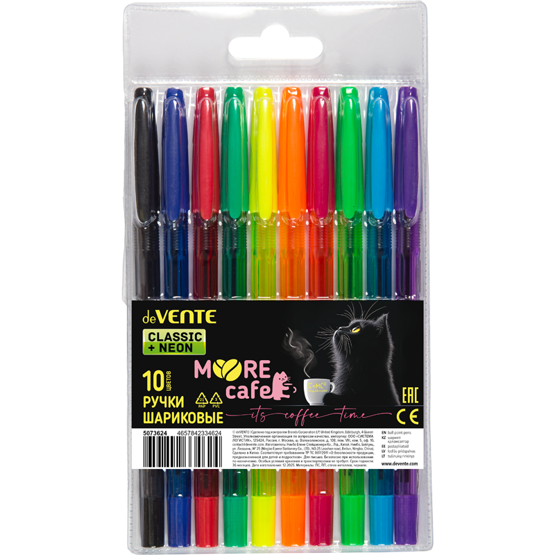 Набор ручек шариковых "deVENTE. MooreCafe" 10 цветов, d=0,7 мм, с полупрозрачным корпусом и металлическим наконечником, сменный стержень, в пластиковом блистере