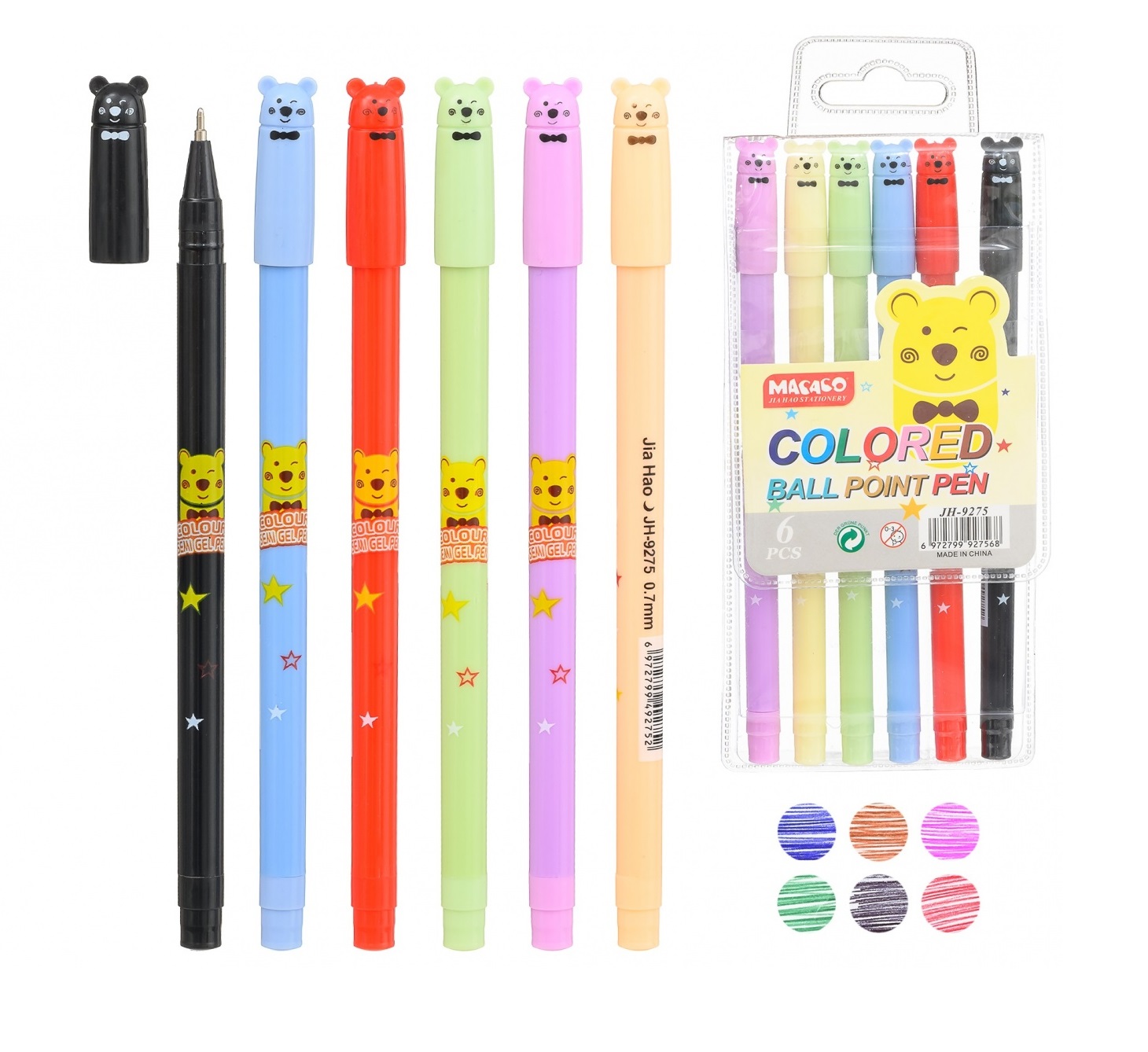 Набор шариковых ручек MC черный корпус 6цв, цв.резин.держ и колпачок 0,7мм
