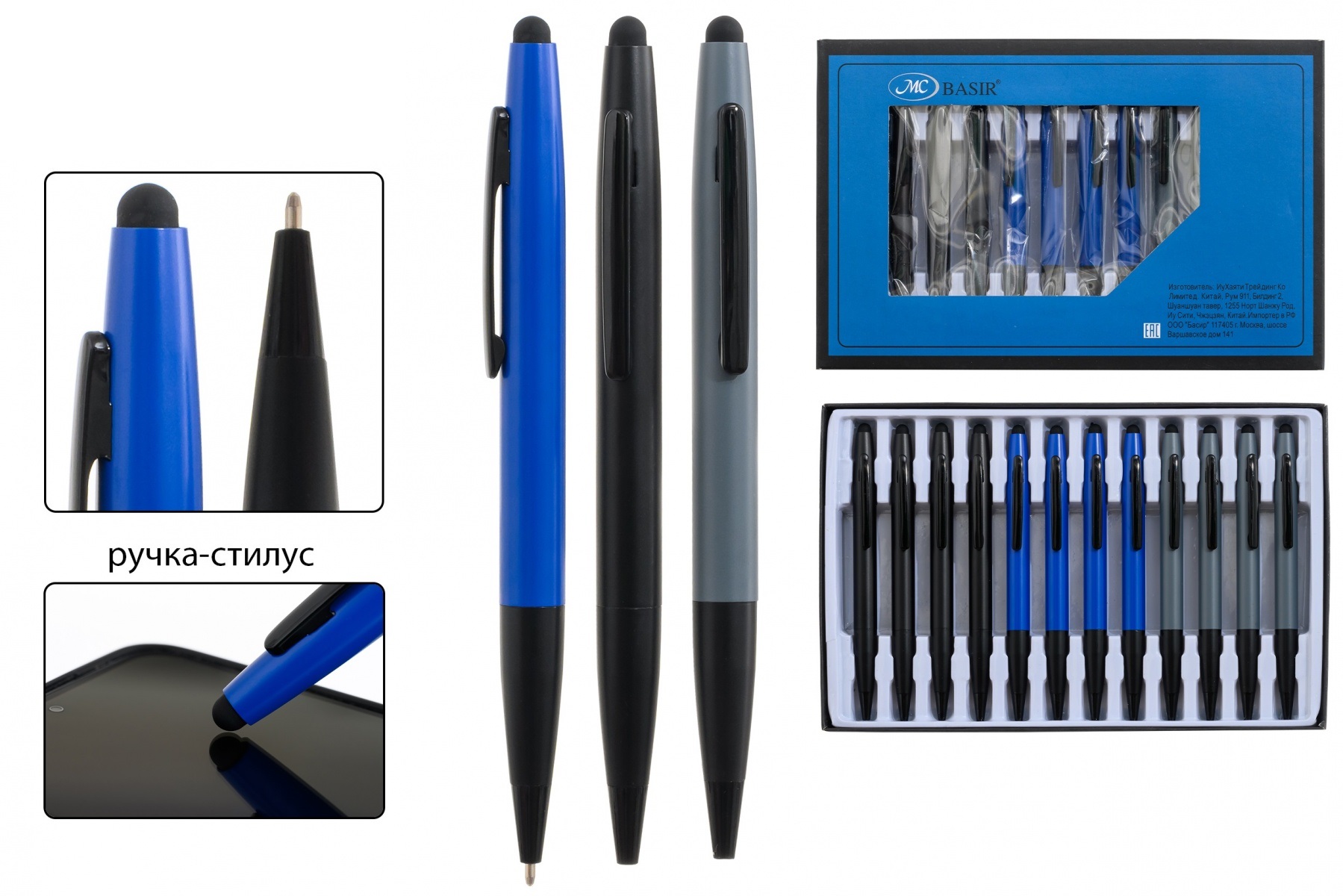 Ручка подарочная металлическая поворот цв.корпус, стилус, синяя