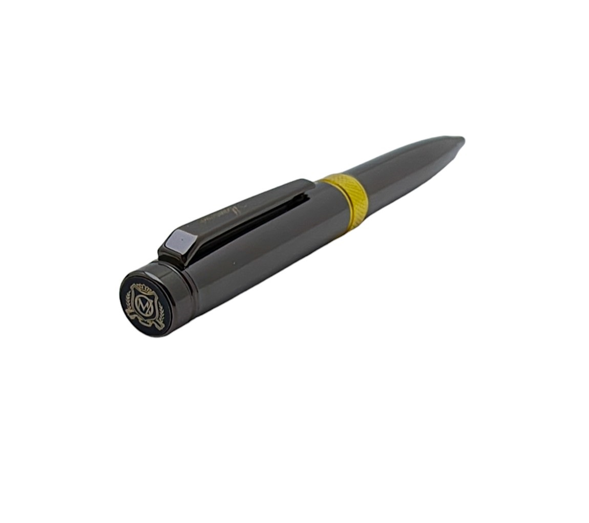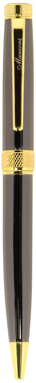 Ручка шариковая подарочная Manzoni Pavia синий 1 мм, корпус металл оружейн., золот., футляр soft touch выдв.