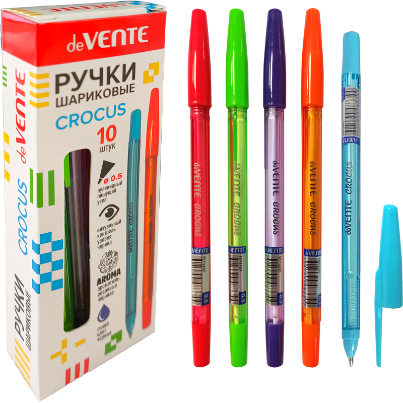 Ручка шариковая "deVENTE. Crocus" d=0,5 мм, полупрозрачный флуоресцентный корпус с пластиковым держателем, ароматизированные синие чернила, сменный стержень, индивидуальная маркировка, цвета корпуса ассорти, в картонной коробке, синяя
