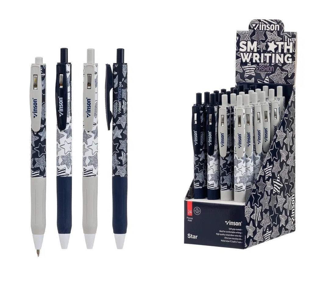 Ручка масляная автомат VINSON Star матовый цв. корпус, рисунок звёзды, резин. держатель; 0,7 синяя