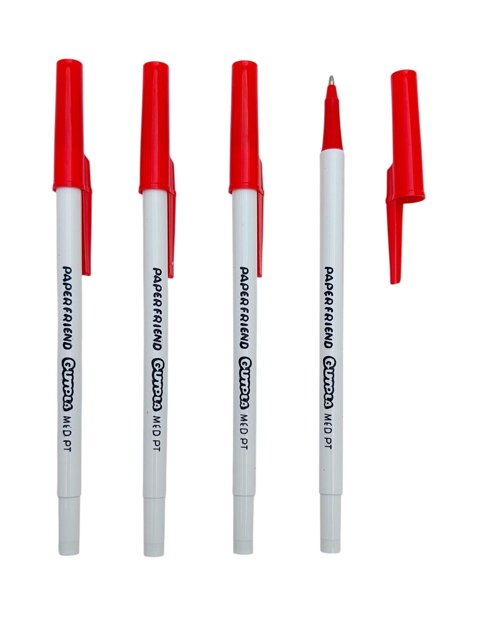 Ручка шариковая белый круглый корпус, красный колпачок, 1мм, красная