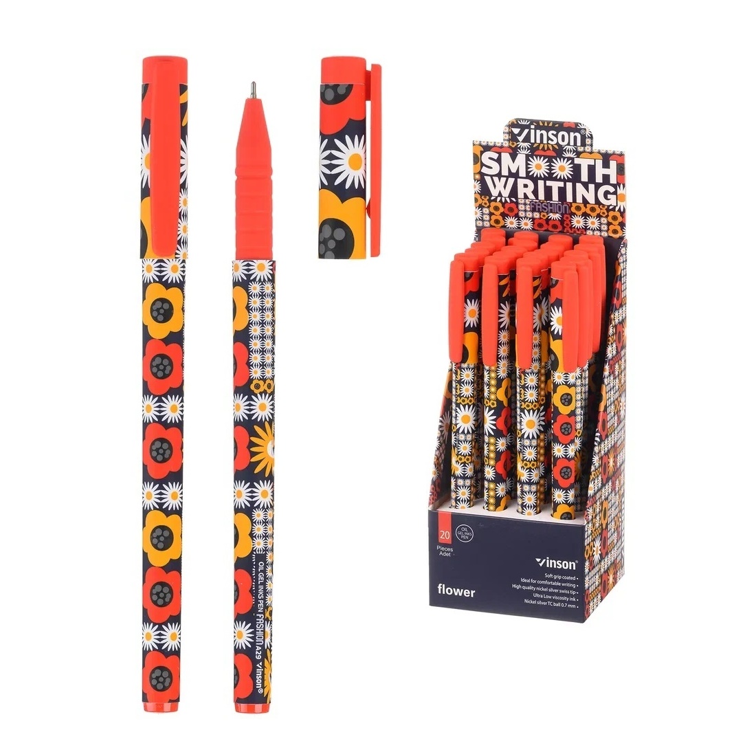 Ручка масляная VINSON Flower матовый под soft корпус, игольч, 0,7мм, синяя