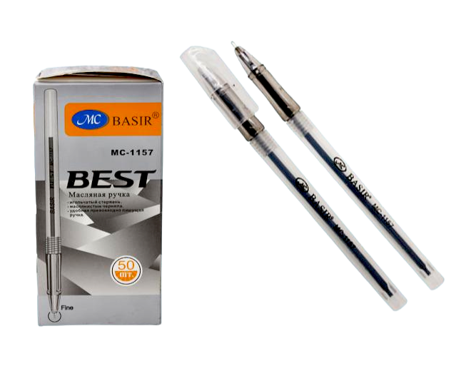 Ручка масляная MC белый полупрозрачный корпус,синий держатель, черная