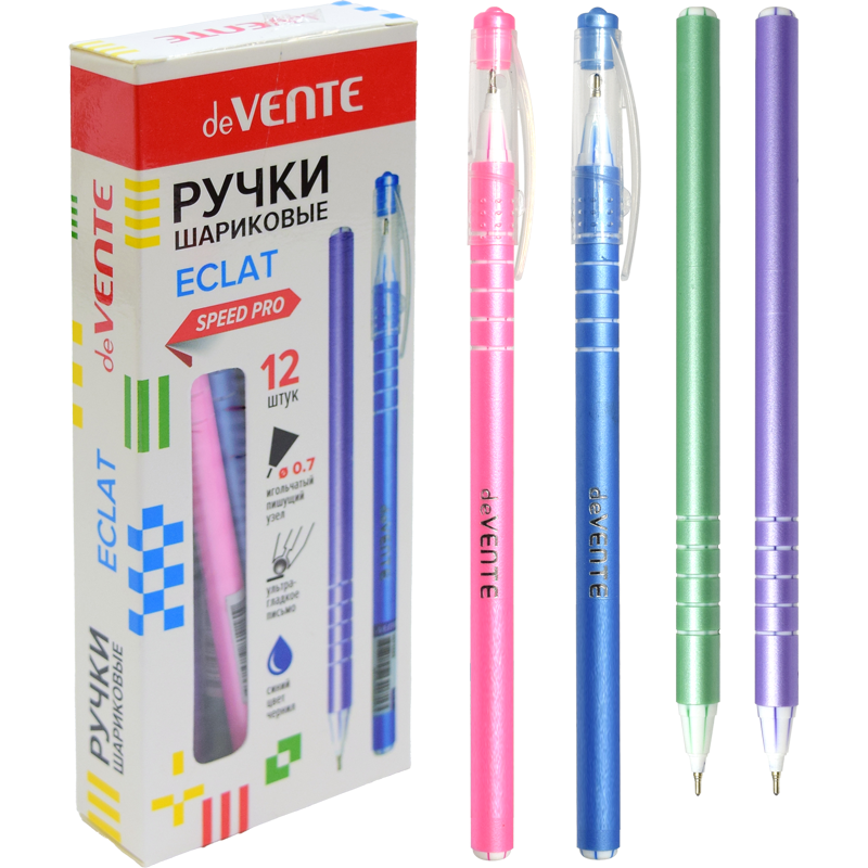 Ручка масляная deVENTE. Eclat серия Speed Pro, d=0,7 мм, игольч, ультра гладкое письмо, цв. перламутр. корпус, цвета корпуса ассорти, одноразовая, синяя,