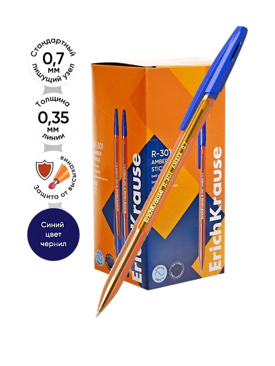 Длина непрерывной линии составляет 2000 м при толщине 0.35 мм , что является одним из лучших показателей в своей категории. Модель R-301 Stick Amber 0.7 имеет узнаваемую запатентованную форму и стала одним из бестселлеров в ассортименте шариковых ручек ErichKrause более чем в пятидесяти странах мира.