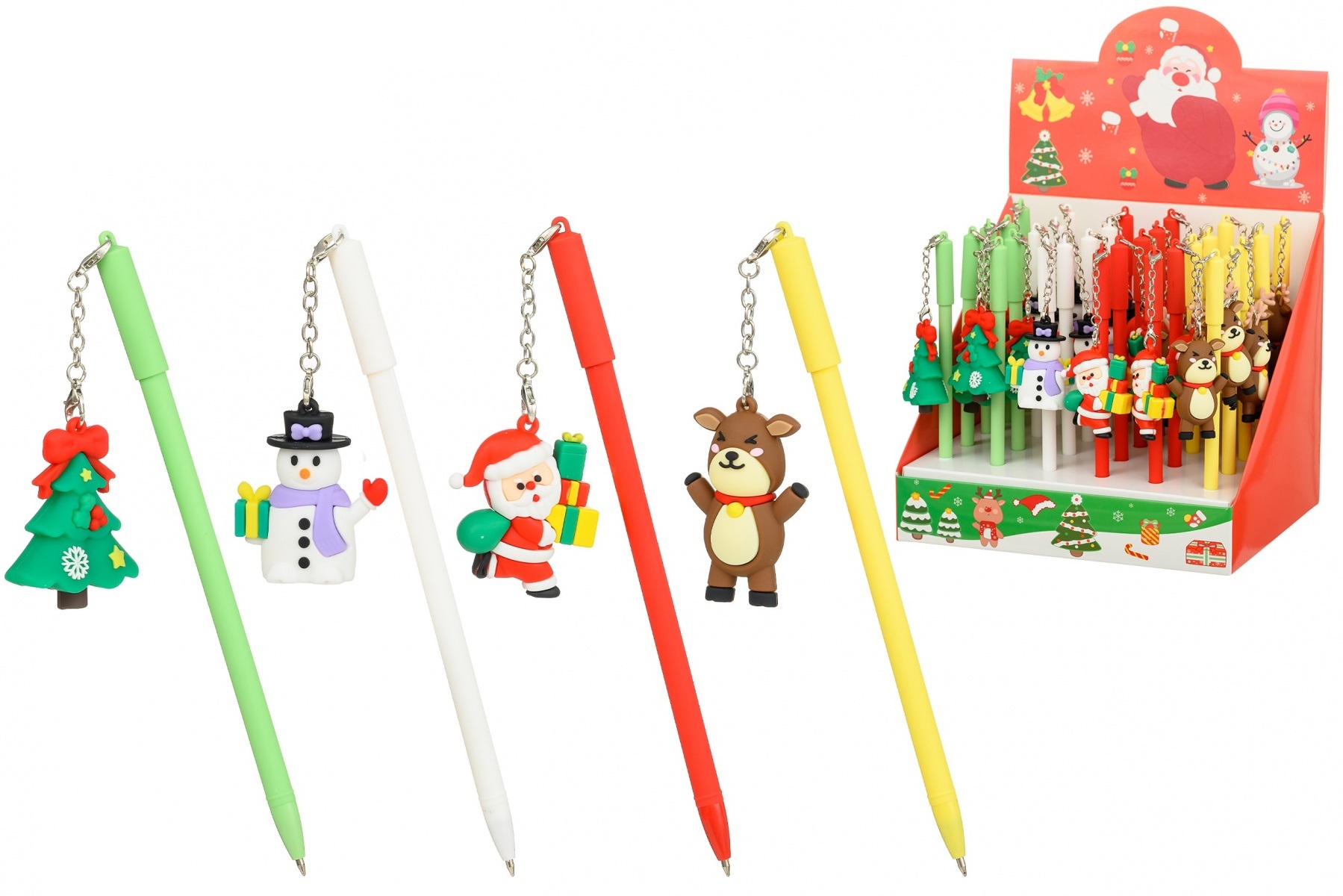 Ручка шариковая сувенирная "НОВОГОДНИЕ" колпачок со съёмным брелоком (Снеговик, Дед Мороз, елка, олень), цв. матовый корпус ассорти, синяя