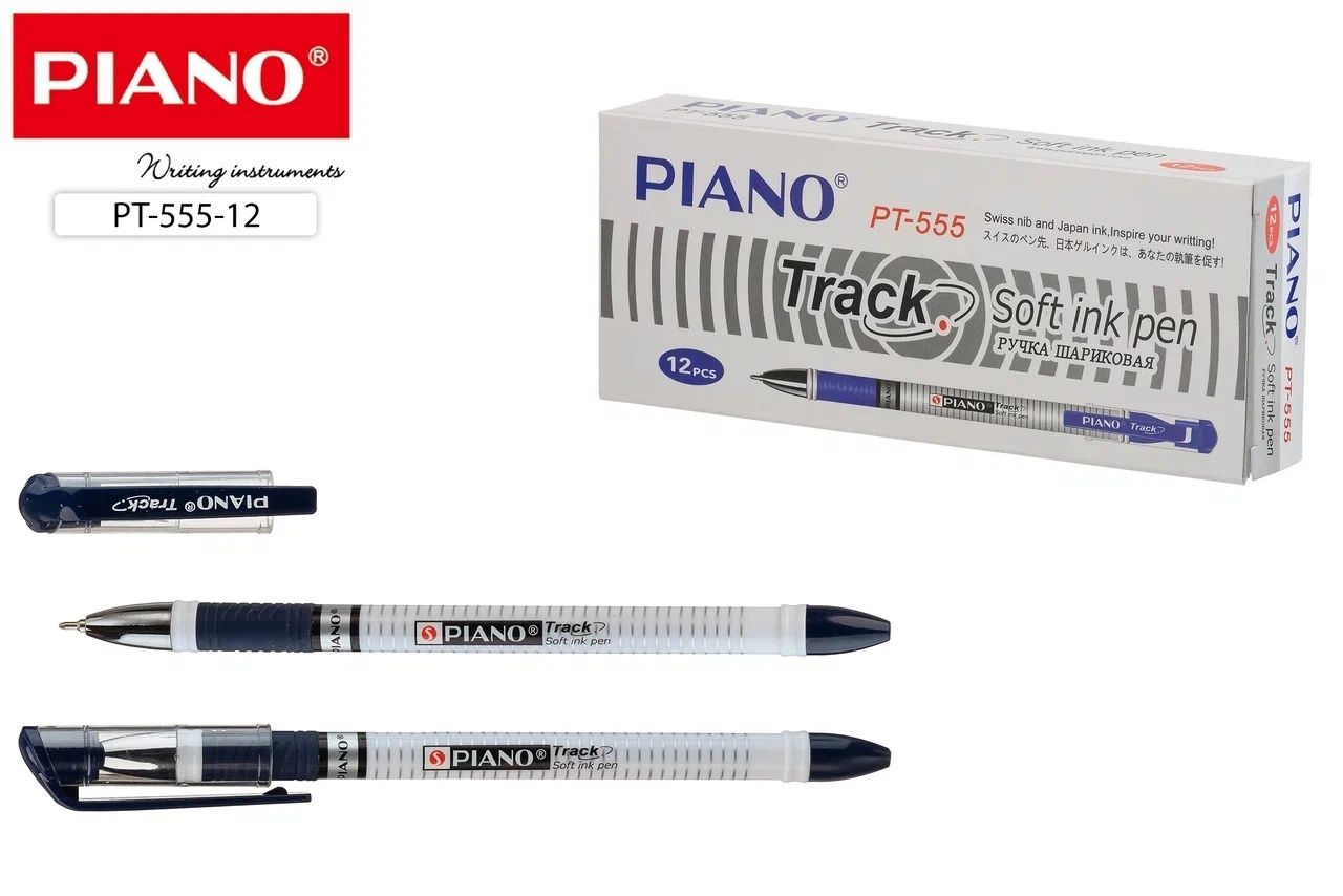 Ручка масляная "Piano Track", белый кораус с рисунком гориз. полоска, резин. держ.,метал.након., игольч, синяя