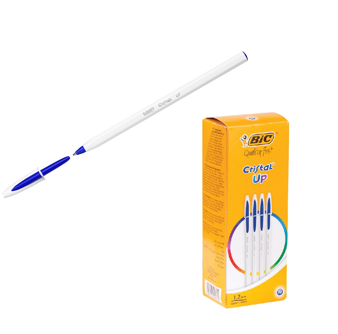Ручка шар Bic "Cristal Up" белый корпус, толщина шарика 1,2мм (толщина письма 0,35 мм) синяя