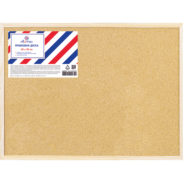 Доска пробковая с деревянной рамой "Attomex" 400x300 мм, возможность горизонтального и вертикального крепления, термоусадочная пленка