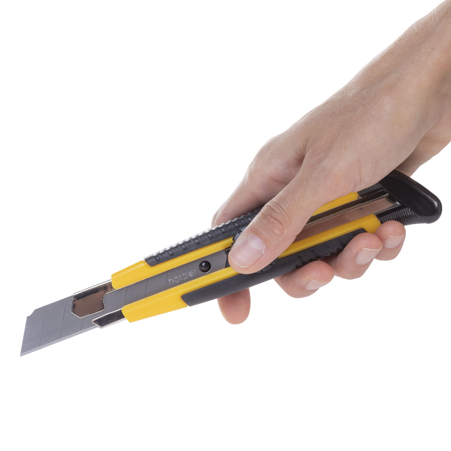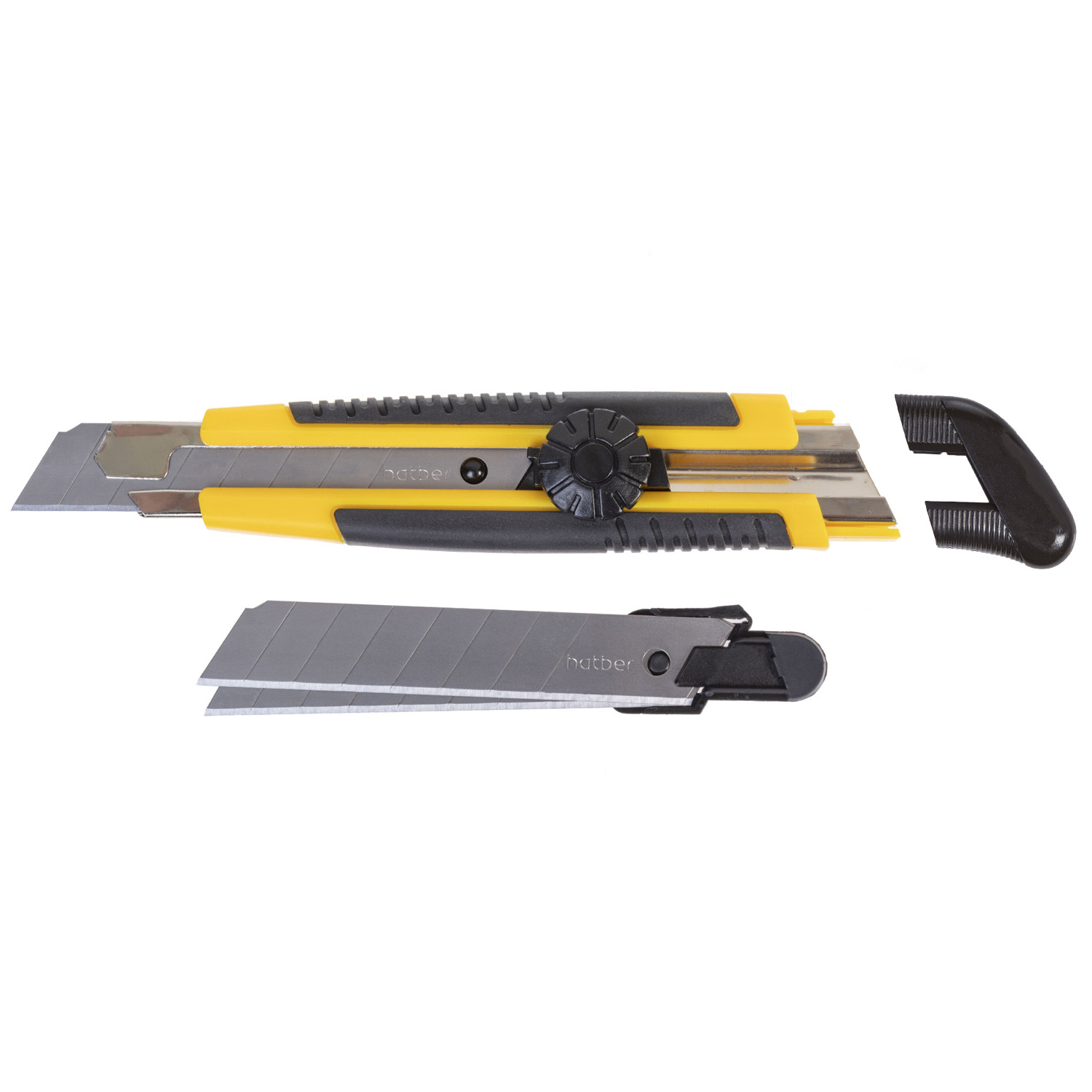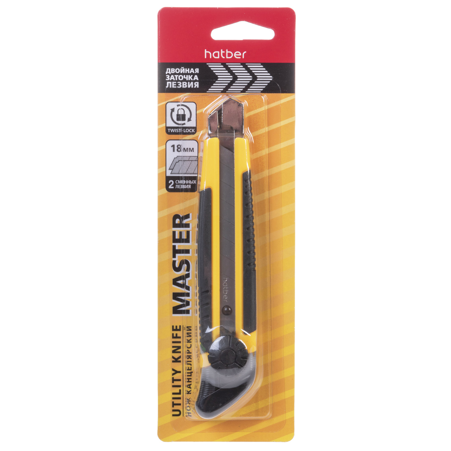 Нож Канцелярский Hatber MASTER 18мм TWIST-LOCK прорезиненный корпус 2 запасн. лезвия металл.направл. в блистере с европодвесом