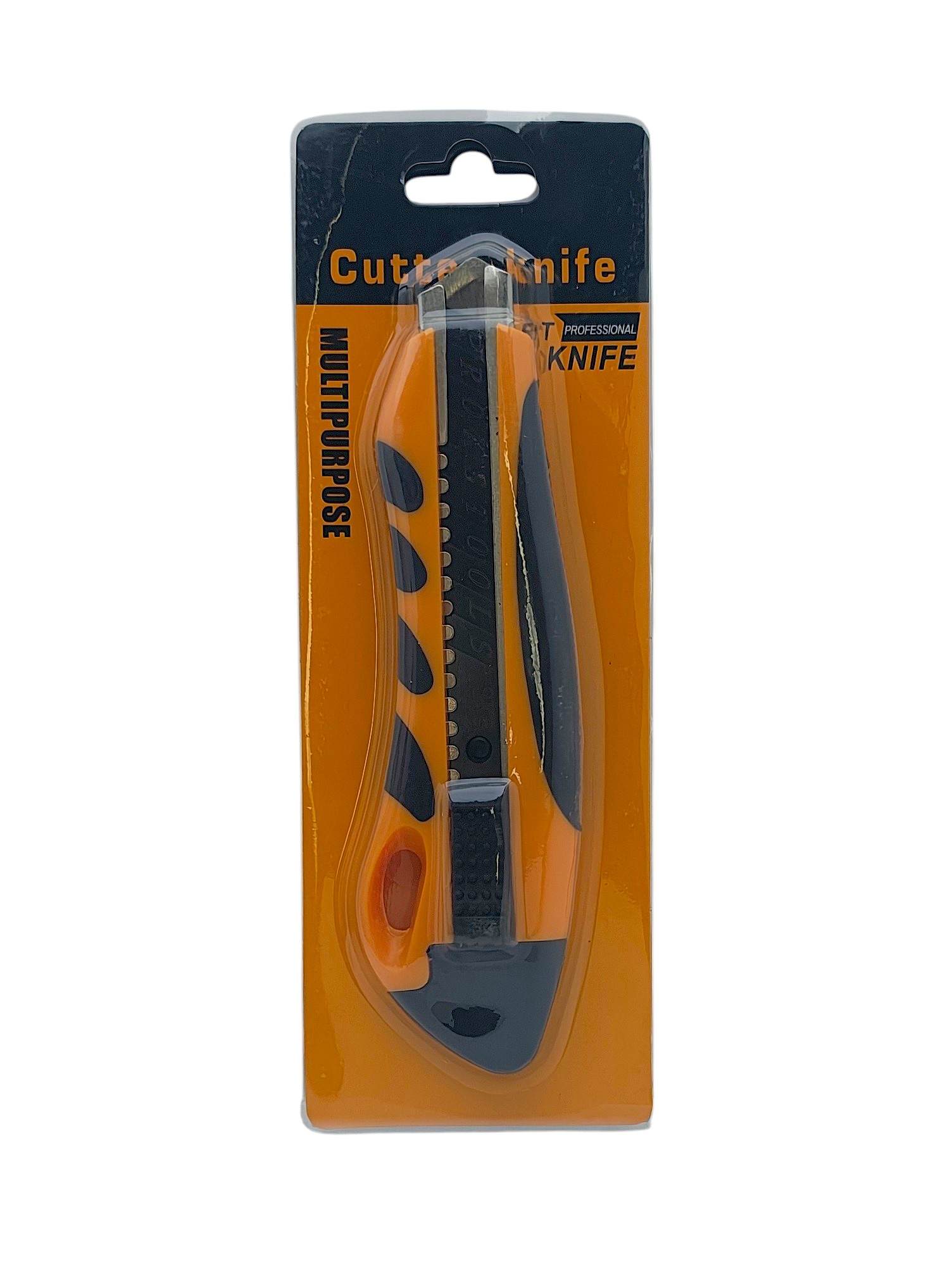 Нож канцелярский 18мм пласт эргоном. корпус с кауч.вставками , автофиксатор, метал.направл, черн.лез
