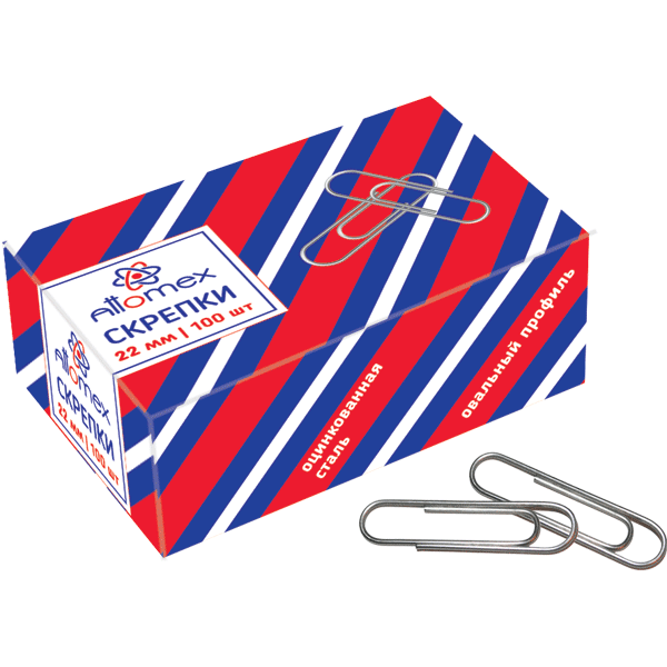 Скрепки металлические Attomex 22мм овальные оцинкованные, 100 шт в к/к