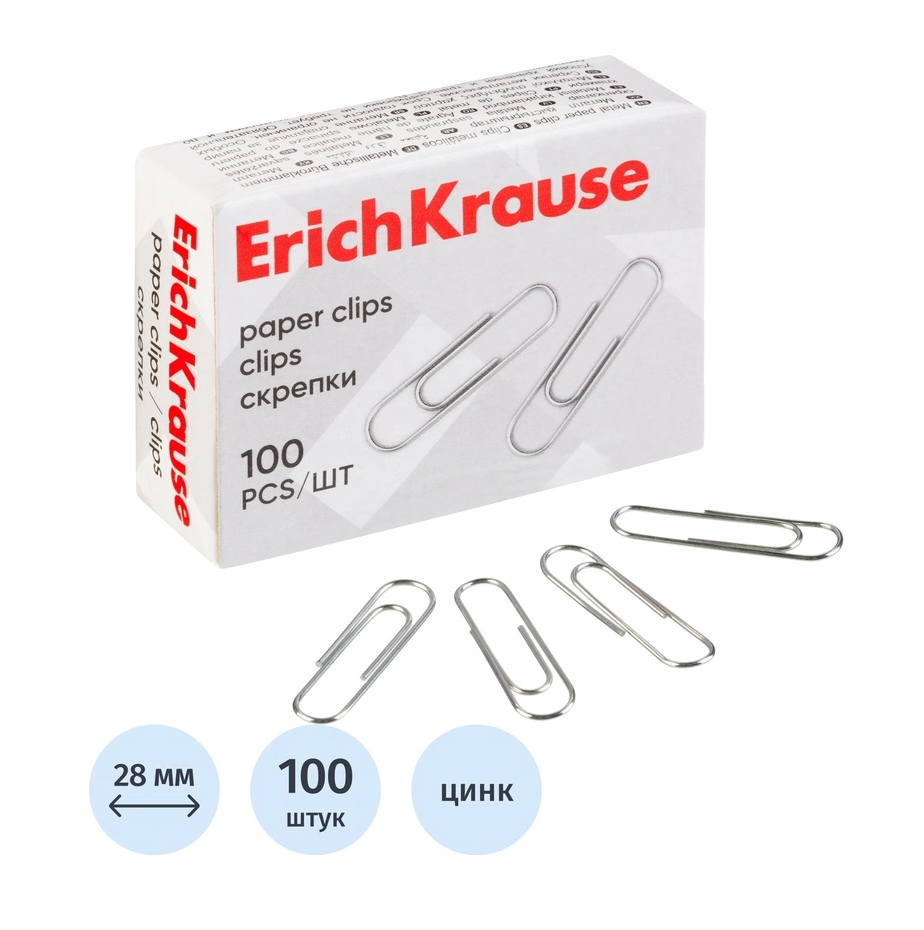 Скрепки металлические, 28 мм, 100 шт. к/к