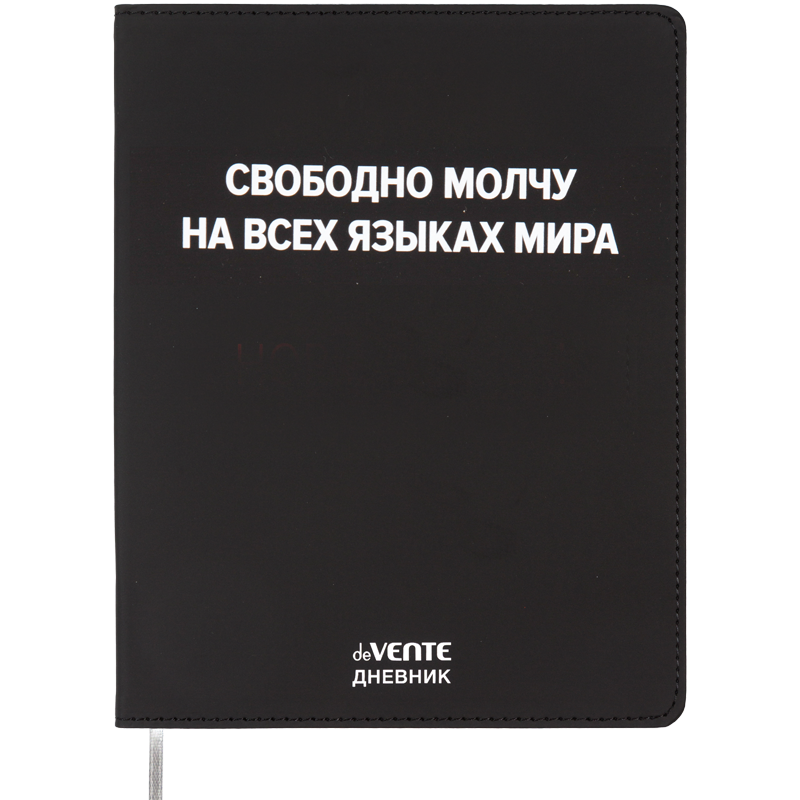 Дневник "deVENTE. Свободно молчу на всех языках мира" универсальный блок, 48 листов, белая бумага 80 г/м², печать в 1 краску, гибкая обложка из искусственной кожи, шелкография, отстрочка, 1 ляссе
