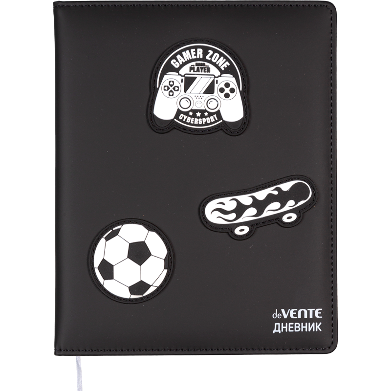 Дневник "deVENTE. Adventure Zone" универсальный блок, 48 листов, белая бумага 80 г/м², печать в 1 краску, твердая обложка из искусственной кожи с поролоном, 3 цветные объемные аппликации rubber patch, шелкография, отстрочка, 1 ляссе