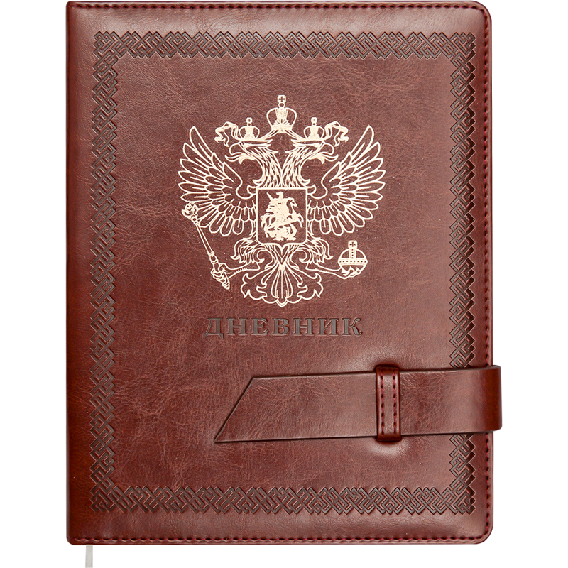 Дневник "deVENTE. Герб" универсальный блок, 48 листов, белая бумага 80 г/м², печать в 1 краску, твердая обложка из искусственной кожи с поролоном, хлястик, термо тиснение, тиснение фольгой, отстрочка, 1 ляссе, коричневый