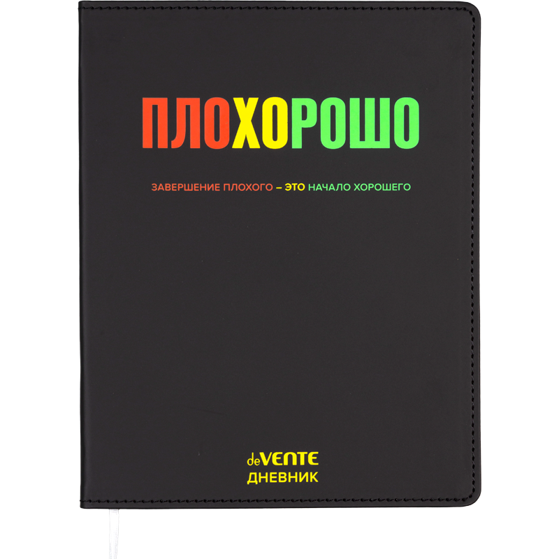 Дневник "deVENTE. ПЛОХОРОШО" универсальный блок, 48 листов, белая бумага 80 г/м², печать в 1 краску, гибкая обложка из искусственной кожи, шелкография, отстрочка, 1 ляссе