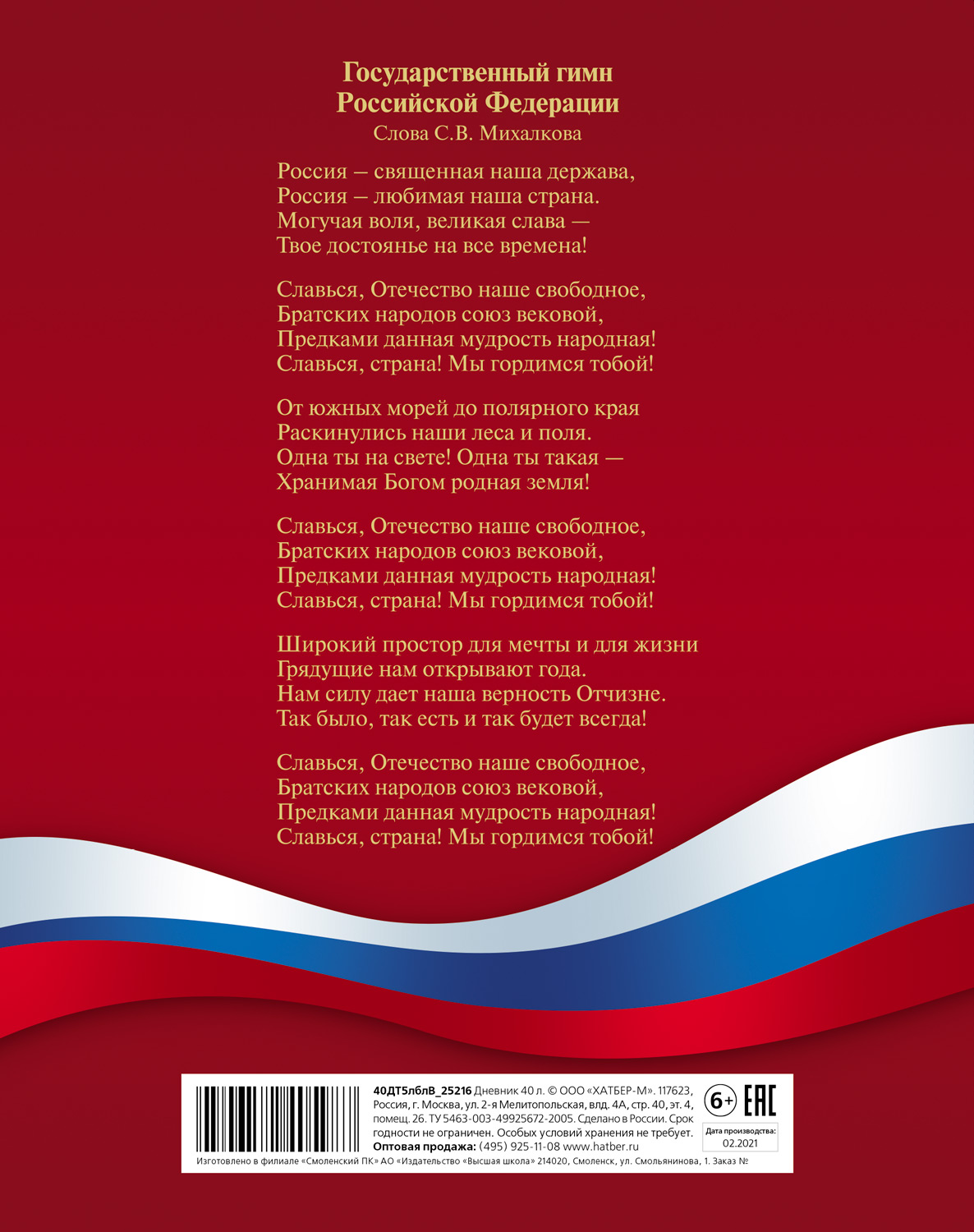 Дневник для 1-11кл. 40л А5ф тв.переплет мат.ламин.-Российского школьника- с гимном