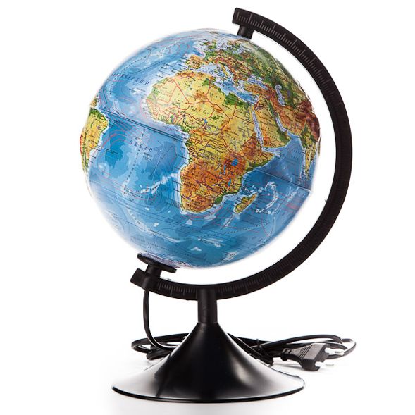 Глобус Земли физико-политический 210 мм с подсветкой рельефный Классик