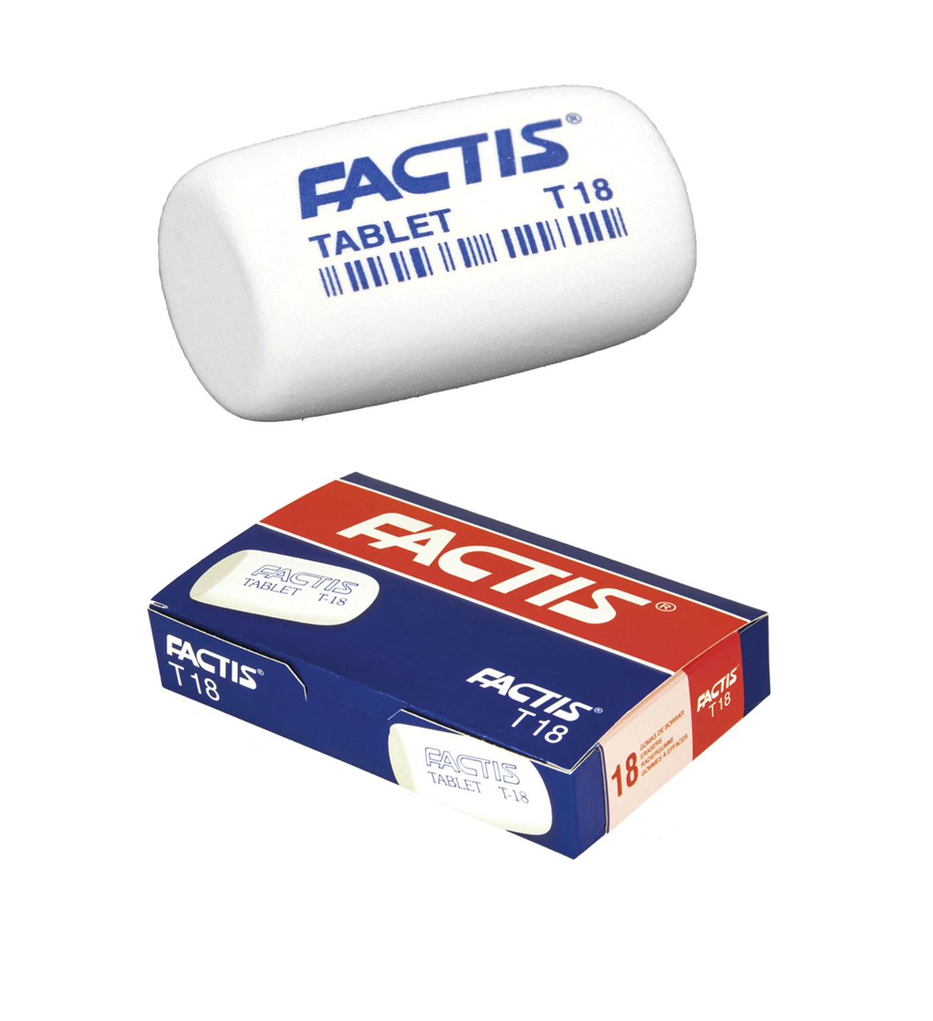 Ластик FACTIS Tablet T 18 (Испания), 45х28х13 мм, белый, скошенный край, синтетический каучук, T 18
