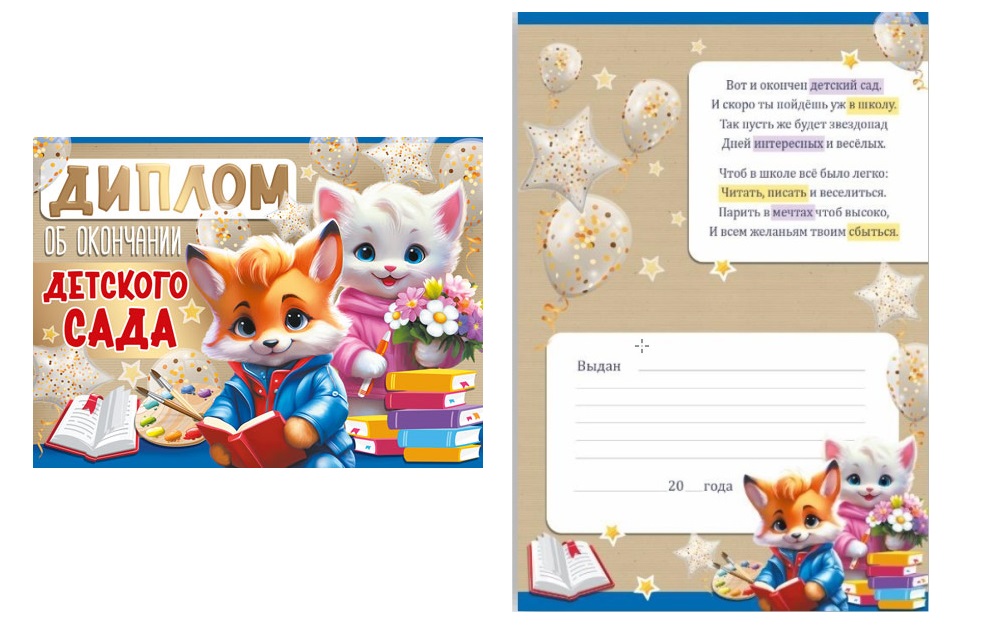 Диплом об окончании детского сада. Двойной.. УФ-лак