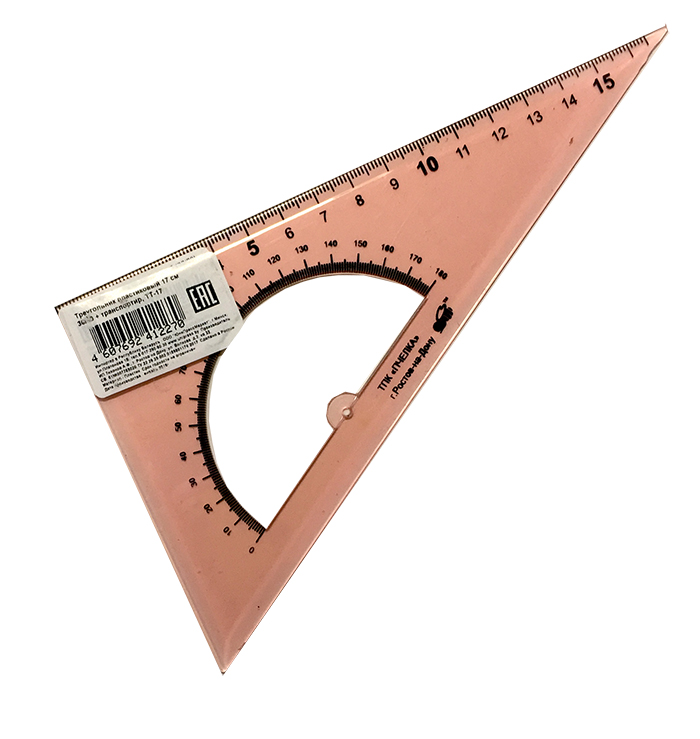 Треугольник пластиковый 17 см 30/60 + транспортир