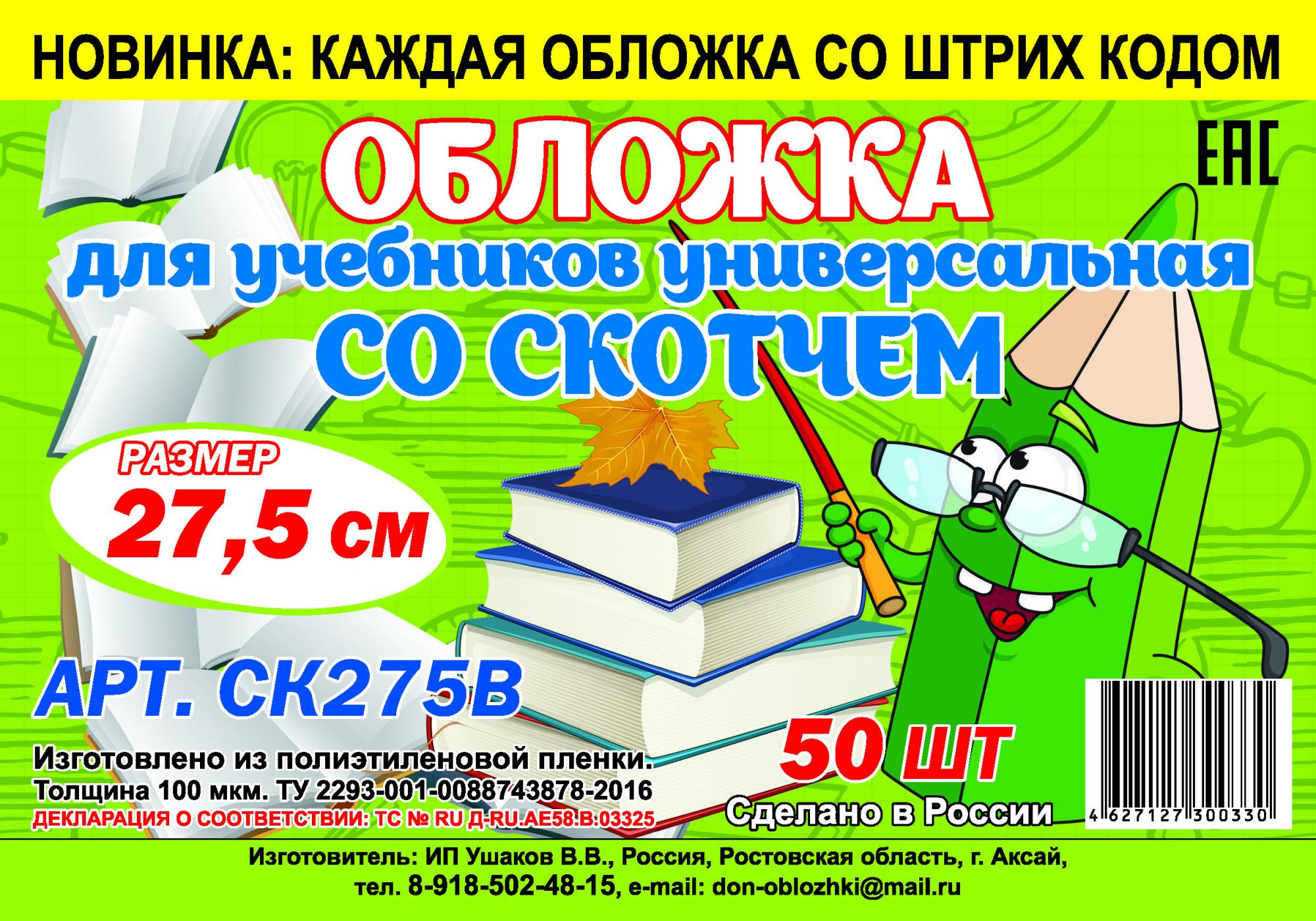 Обложка универсальная для учебников и рабочих тетр. С ЛИПКИМ СЛОЕМ 27.5см