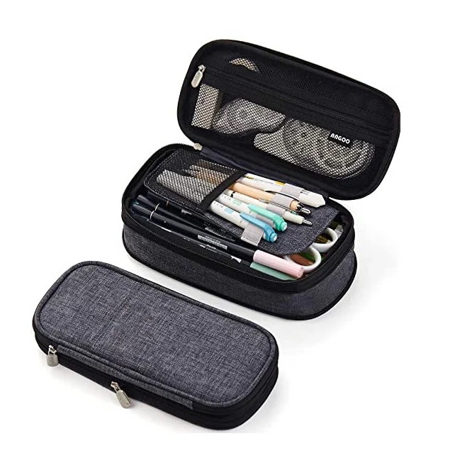 Пенал универсальный с расширением 23*11.5*3-7см серый/синий