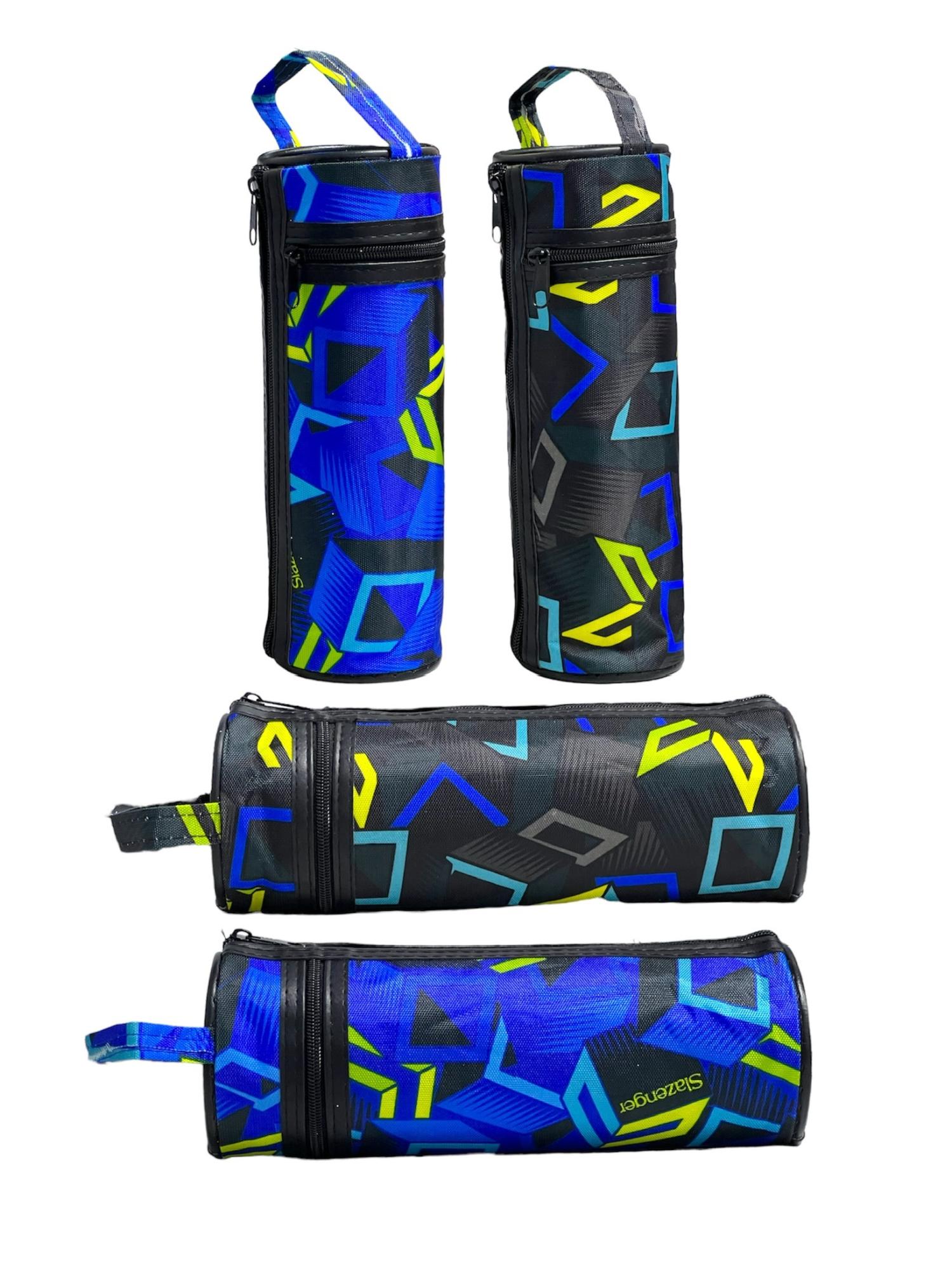 Пенал-тубус ТЕМНЫЙ геометрический узор мягкий на молнии 20х6,5см 2 молнии