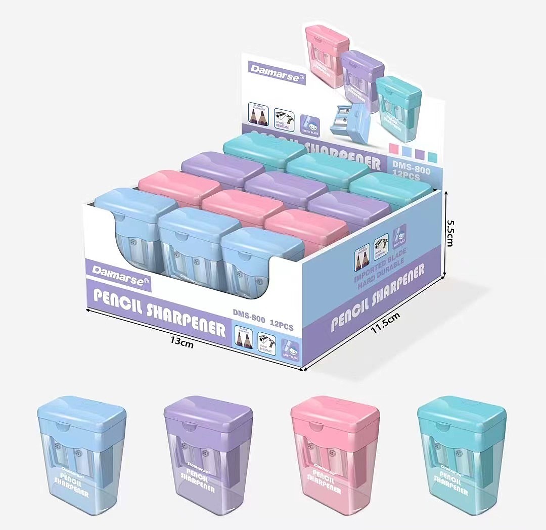 Точилка двойная DMS с контейнером, с крышкой, 4цв. ассорти, 4,3*5,3*2,5см