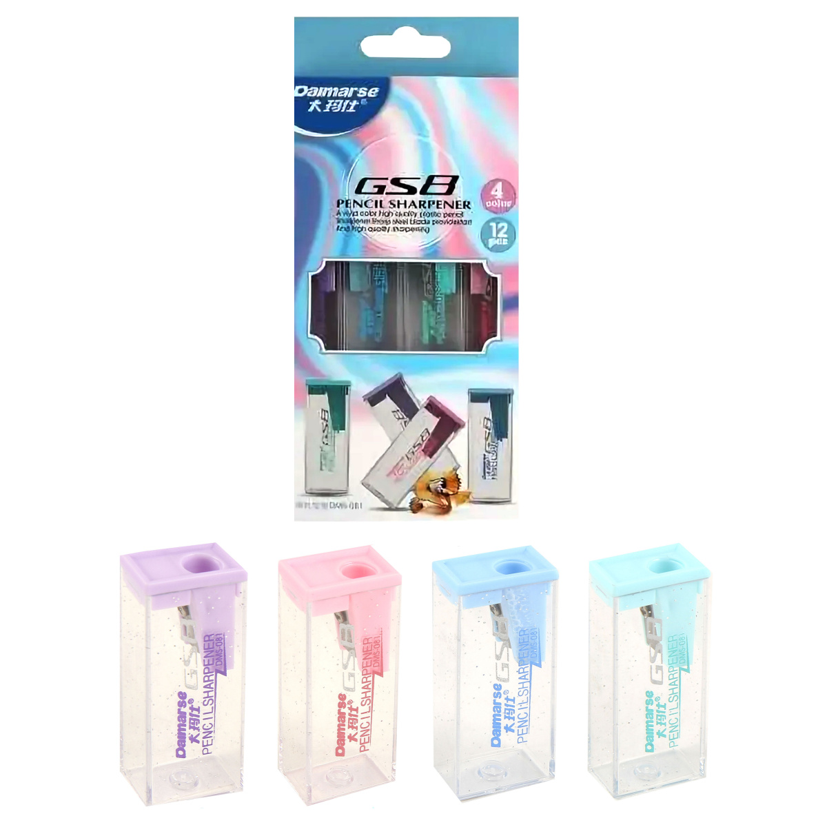 Точилка с контейнером, прямоугольная 4 цвета (cityGS8)