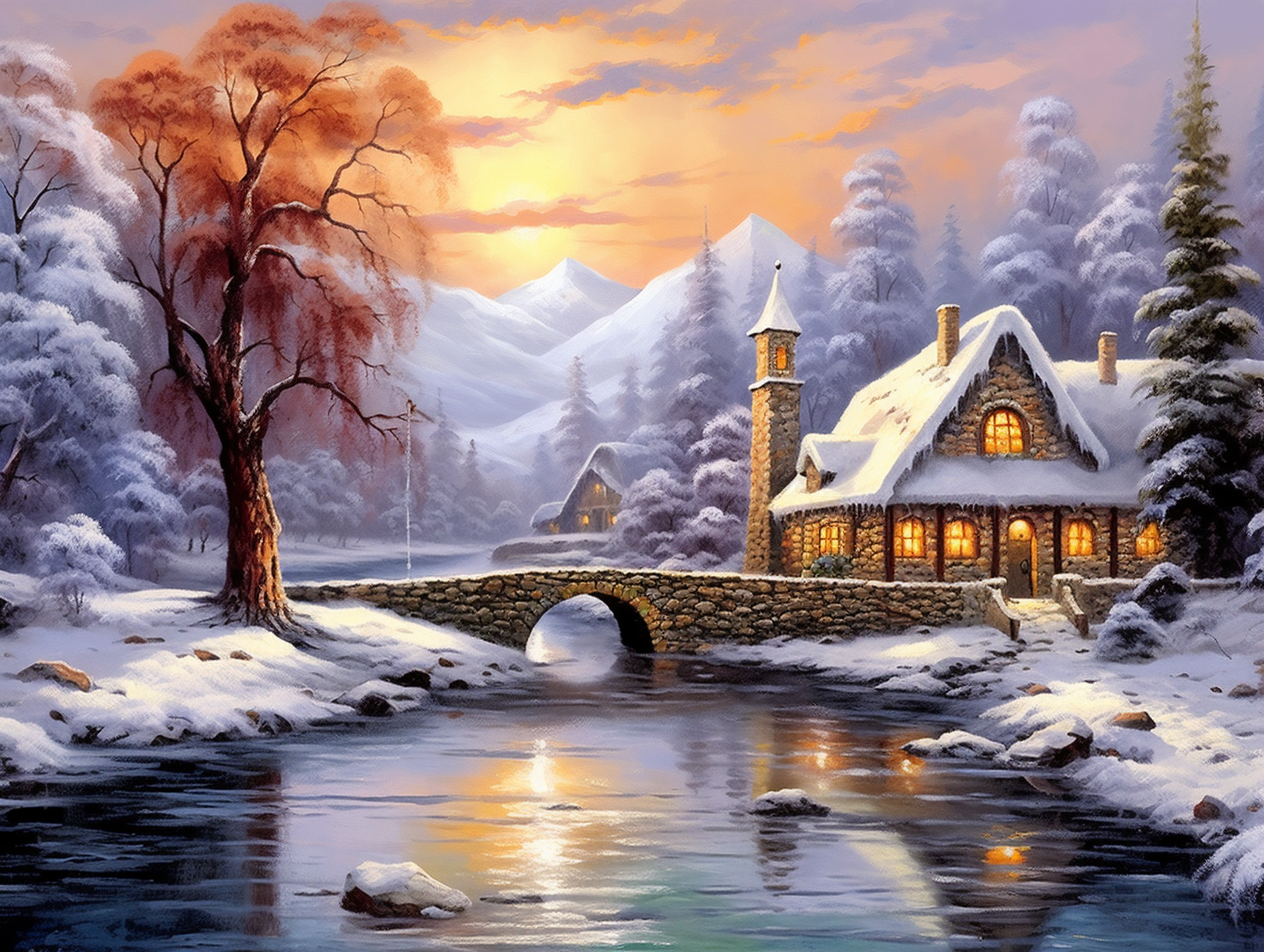 Алмазная мозаика 40х50 Зимний пейзаж на подрамнике, полное заполнение