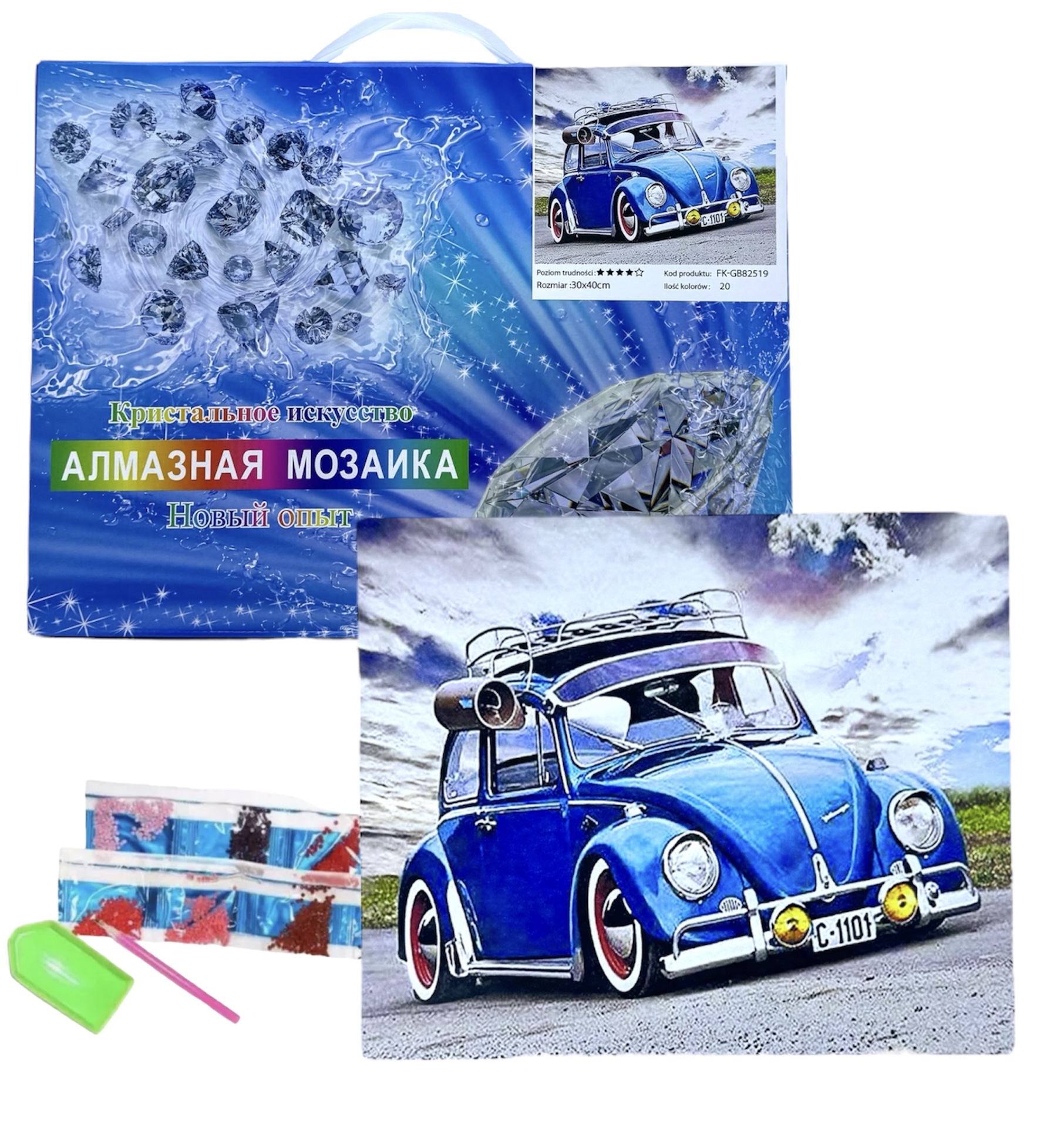Алмазная мозаика 30*40 Синий автомобиль полное заполнение