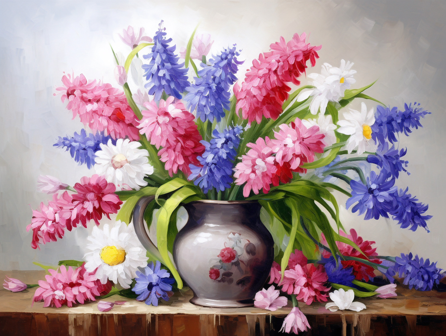 Алмазная мозаика 30х40 Букет в вазе на подрамнике, полное заполнение