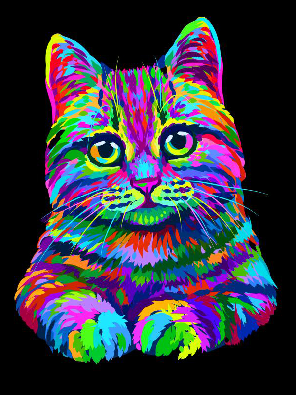 Алмазная мозаика 40х50 Неоновый кот на подрамнике, полное заполнение