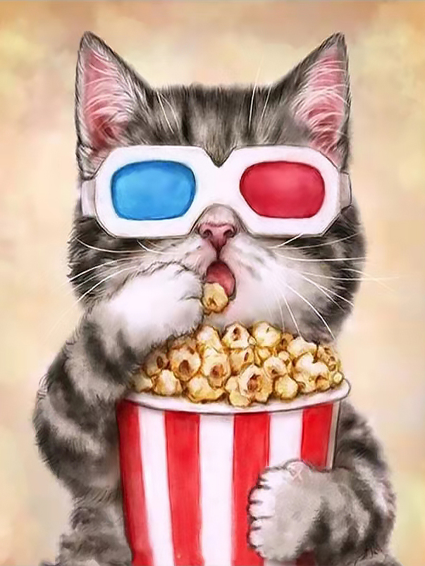 Алмазная мозаика 40х50 Кот и попкорн на подрамнике, полное заполнение