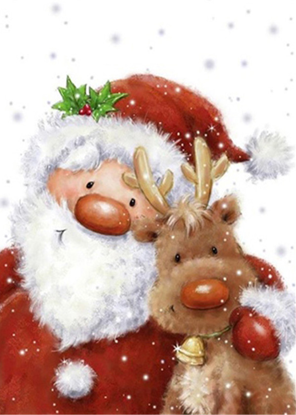 Алмазная мозаика 30х40 Дед Мороз с оленем на подрамнике, полное заполнение
