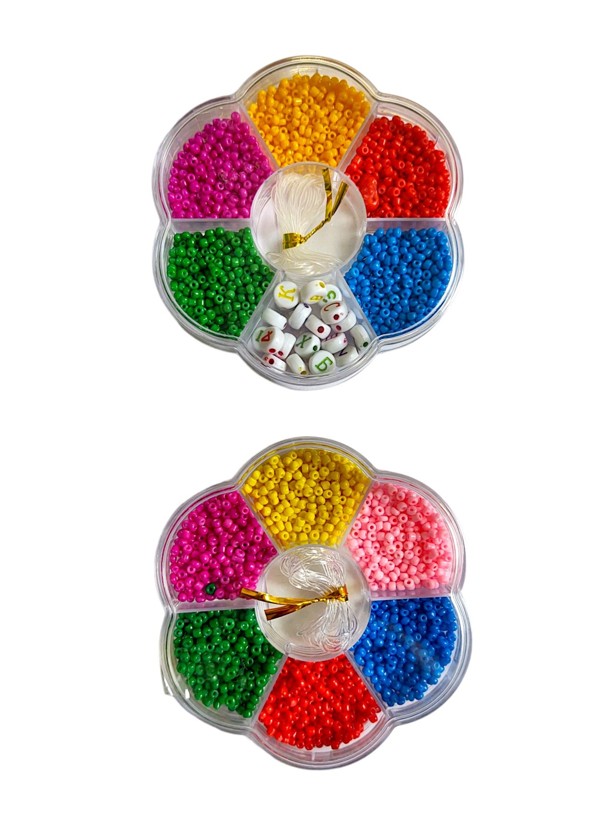Бисер в пластиковом фигруном контейнере 6цв + леска