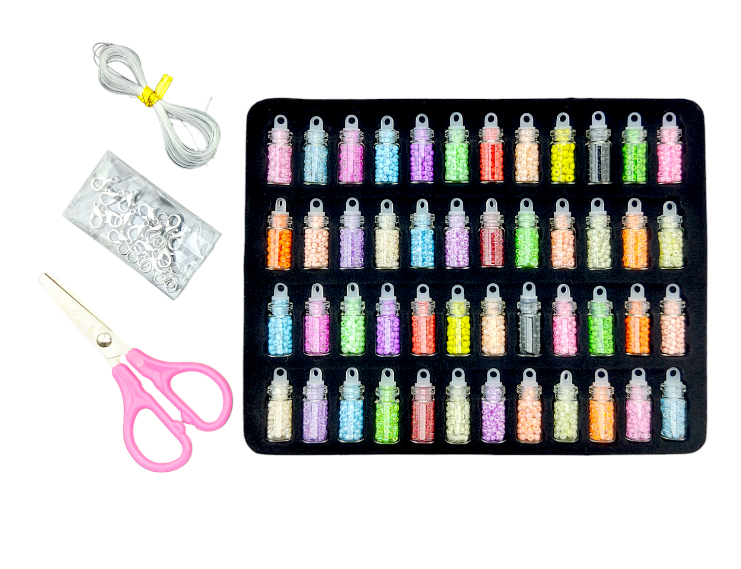 Бисер в баночках 48цв, на подложке +ножницы+ леска+ крепежи