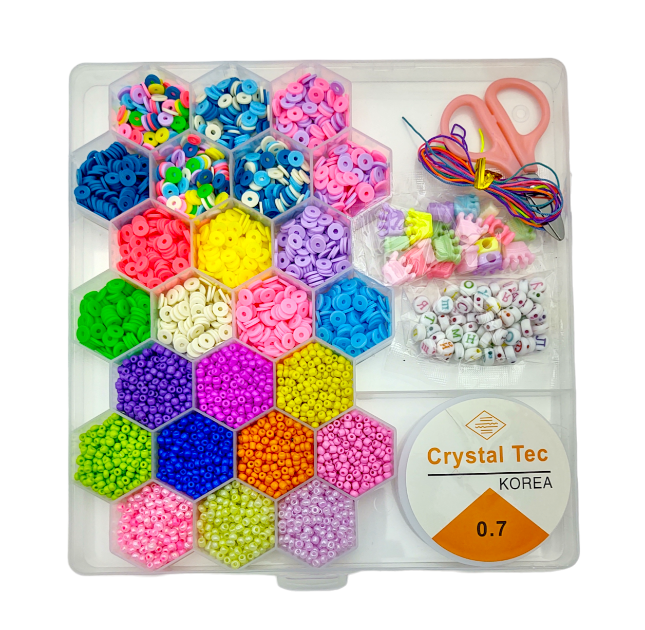 Бисер в пластиковом контейнере +бусины 26цветов +нить-резинка+ ножницы